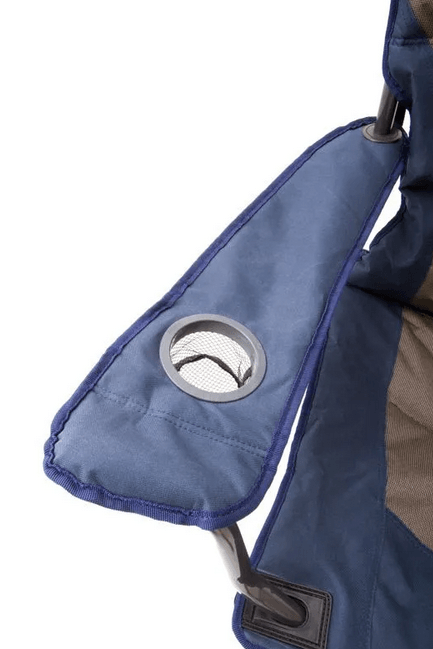 Accoudoirs réglables, poche de rangement arrière et porte-gobelet intégré.